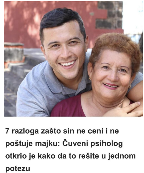 Još od davnina priča se i istražuje o odnosu između sinova i majki, te o tome kako se može prepoznati kada Vas sin ne poštuje i ne cijeni. Postoji jedno jednostavno rješenje kako da ne bude tako.