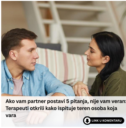 - Psihijatar Marko Jovanović naglasio je da je ključno prepoznati ove obrasce kako bi se sačuvao emocionalni mir. Gaslighting ima dugoročan učinak na mentalno zdravlje, stoga je važno prepoznati važnost ovih problema u vašoj vezi. Uobičajene taktike za prepoznavanje preljuba Jedno od najšokantnijih pitanja koje varalica može postaviti je: Varaš li zapravo? Iako se na prvi pogled čini čudnim, ovo pitanje često postavljaju pojedinci koji se suočavaju s vlastitim nesigurnostima i nedoumicama.
