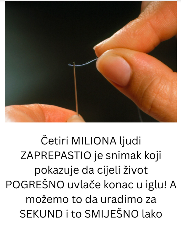• U posljednje vrijeme, zahvaljujući raznim savjetima koji se dijele među ljudima, sve više dolaze do izražaja mali trikovi koji mogu znatno olakšati svakodnevne radnje. Jedan od takvih trikova odnosi se upravo na uvlačenje konca u iglu, i mnoge je iznenadio svojom jednostavnošću.