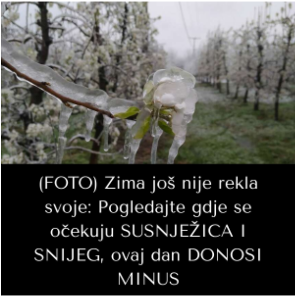 - Jedan od najvećih izazova koji slijedi jeste prijetnja od mraza, koja bi mogla uzrokovati ozbiljne štete u poljoprivredi. Mraz koji se najvjerojatnije pojavi tokom noći, mogao bi uništiti procvjetale voćnjake i usjeve.