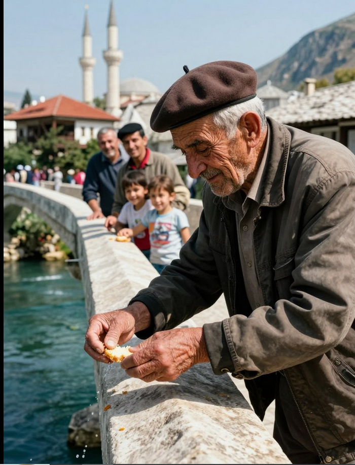 Pekar Nedim je bio prvi koji je kleknuo, okrenuo glavu prema ljudima i rekao: “Ovo su kosti djeteta koje je nestalo pre mnogo godina.” Rijeka je ponovo nosila sve – sve osim tih kostiju, koje su od tada čuvale istinu. Ibro je tiho govorio o tome kako je prvi put primetio onu malu cipele, plutajući na vodi, i kako je od tada svaki dan dolazio, bacajući kiflu kao počast, kao znak da se nešto mora poštovati, nešto što nije bilo u njegovoj moći.