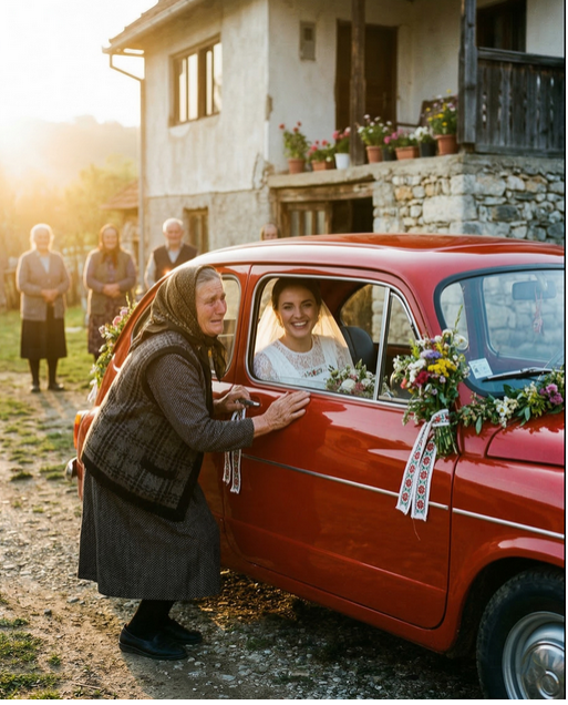 Venčanje je trajalo do kasno u noć, ljudi su pevali i slavili. Laza je bio počasni gost, a svi su nazdravljali za njegovu nesebičnu ljubaznost. Milica i njen muž su započeli novi život, a Laza je nastavio da pomaže svima u selu, bez obzira na sve.Njegov crveni automobil postao je simbol tog dana, simbol ljubavi, zajedništva i jednostavnosti. Niko više nije mislio na luksuz, jer su svi shvatili da prava vrednost života nije u novcu, već u tome koliko možemo da usrećimo druge.