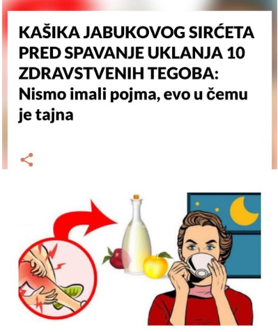 Jabučni ocat tradicionalno se smatra prirodnim lijekom i dodatkom prehrani koji posjeduje višestruke prednosti. Ljudi ga obično koriste u salatama ili kao sredstvo za mršavljenje, ali postoji mnogo informacija koje su još uvijek nepoznate o njegovim učincima. Učinci su posebno značajni ako se koristi prije spavanja, tijekom faze oporavka tijela i usporavanja metabolizma.