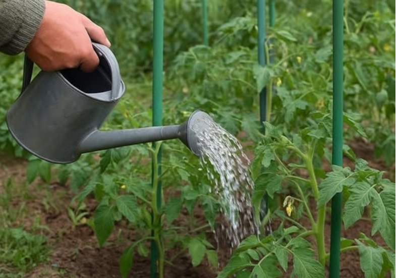 Kad se presađuje, rajčicu treba zaliti odmah. Zatim slijedi još jedno zalijevanje nakon tri do pet dana, osobito ako se popunjavaju mjesta gdje se rasad nije primio. Nakon što biljke krenu, dolazi ono što zvuči kontraintuitivno: zalijevanje treba potpuno obustaviti na desetak do petnaest dana. Time se biljka prisiljava da razvije što dublji i jači korijenov sustav, što će joj kasnije koristiti tijekom čitave vegetacije. Nakon tog razdoblja, zalijevanje se vraća u turnusima – prije nego što se pojave prvi plodovi, na svakih osam do dvanaest dana, a nakon toga svakih pet do deset dana, ovisno o vremenu i tlu. Kod sorti koje se beru više puta, preporučuje se zalijevanje nakon svake berbe.