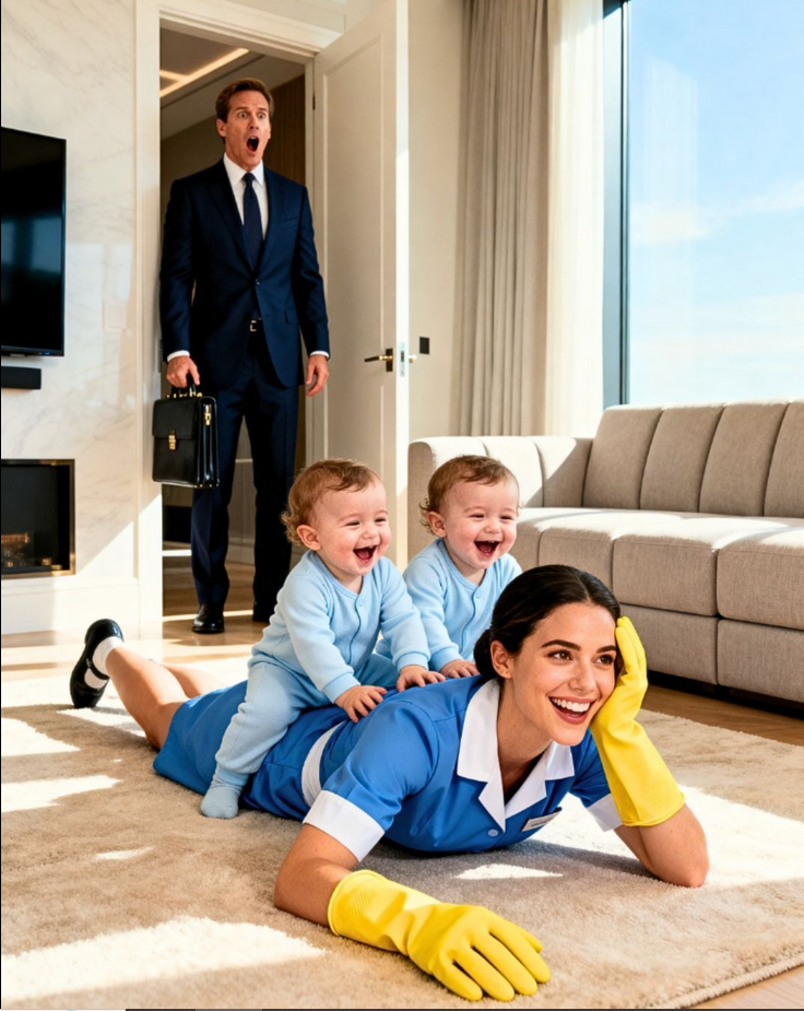 Ali ono što je čuo čim je zakoračio u hodnik nije bio haos ni plač djece. Bio je to zvuk smijeha. Taj zvuk bio je toliko neobičan u toj kući da je Harrison na trenutak zastao. Pratio je smijeh sve do dnevne sobe i tamo ugledao prizor koji nije očekivao.Na sredini sobe, na velikom tepihu, ležala je Lily. Na rukama je nosila gumene rukavice za čišćenje, a iznad nje su stajala dva mala dječaka koji su pokušavali održati ravnotežu. Ethan je nesigurno stajao na njenom stomaku, dok je Caleb, dječak za kojeg su doktori sumnjali da će imati problema s hodanjem, pokušavao stajati na njenim grudima. Lily se lagano pomjerala, stvarajući mali izazov za njihovu ravnotežu, a djeca su se glasno smijala.
