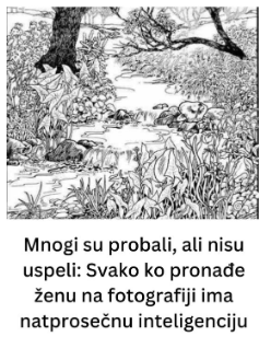 Raspravljamo o problemu s vašim očima i mozgom. To je optička iluzija koja se na prvi pogled čini jednostavnom, ali sadrži značajan trag za vašu koncentraciju i promatranje. Ovi zadaci nisu samo ugodni, već nam i pomažu da shvatimo kako različito naši mozgovi obrađuju informacije. Ova optička iluzija prikazuje crno-bijeli krajolik s granama, lišćem i životinjama, ali ono što je posebno u vezi s njom jest to što je djevojčino lice skriveno među tim crtama i potpuno se stopilo s ostatkom slike.