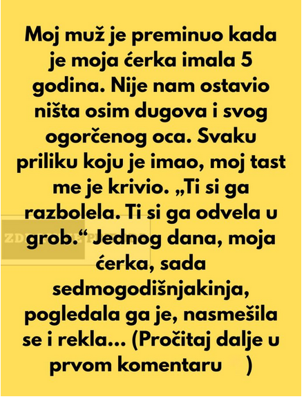 Jednog dana, dok je svekar ponovo vikao na nju, njena kćerka, koja je sada imala sedam godina, prišla je, smireno ga pogledala i postavila pitanje koje će promijeniti sve: “Deda, da li vikanje na mamu vraća tatu?” Njene riječi bile su poput groma, zaledile su ga u trenutku. Dijete, potpuno nevino, ali s nevjerojatnom jasnoćom, postavilo je pitanje koje je probilo sve zidove mržnje i ljutnje koje je godinama nosio.