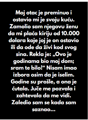 Moj otac je umro i ostavio mi svoju kuću, ali ono što je zapravo ostavio u mojoj duši mnogo je vrijednije: dao mi je snagu da nastavim dalje, uspomene koje me tješite i dom u kojem se njegova ljubav osjeća u svakom kutku. Ta kuća je sada moje utočište i moja odgovornost, podśetnik na prolaznost života, ali i jamstvo da ljubav ostaje vječna.