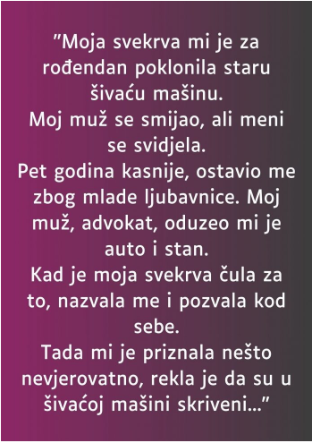 Danas ćemo razgovarati o inspirativnoj priči o ženi koja je iznenada prepoznala značajnu vrijednost poklona koji joj je dala svekrva. Ova priča pokazuje kako obični događaji i predmeti mogu imati značajan utjecaj na naše živote. U početku, dar moje svekrve, šivaći stroj, nije imao nikakve posebne atribute.