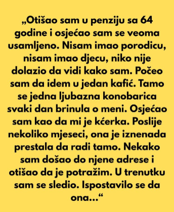 Odgovor koji je dobio bio je nevjerojatan. Njezin kolega, koji je bio pomalo nerazumljiv, tiho mu je rekao što se dogodilo, a on je ostao stajati ispred šanka kao da mu se cijeli svijet promijenio u samo nekoliko sekundi. Usred priče, Kurir je često naglašavao činjenicu da jedan mali trenutak može promijeniti tijek nečijeg života, pa čak i potaknuti hrabrost koja im prije nije bila poznata. Nakon što je čuo razloge zašto je konobarica napustila posao, jednostavno ju je morao promatrati. Dobio je njezinu adresu, ali je dugo stajao ispred komode, držeći list papira u ruci, u slučaju da ima ovlaštenje ući u njezin dom.