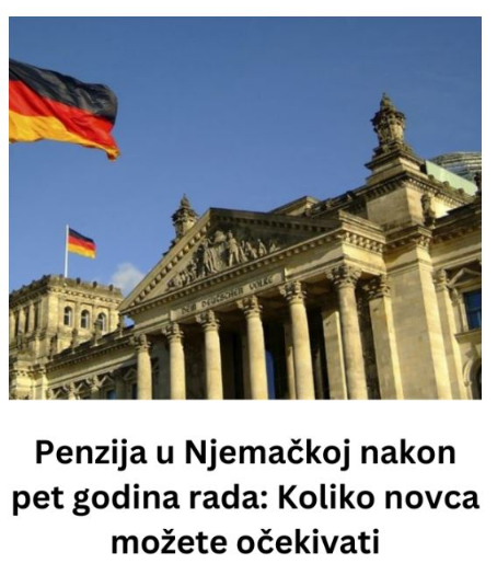 Ogroman broj ljudi sa zapadnog Balkana odlazi u Njemačku gdje pokušavaju da izgrade život dostojam čovjeka. U ovoj državi se penzija može ostvariti nakon pet godina radnog odnosa.