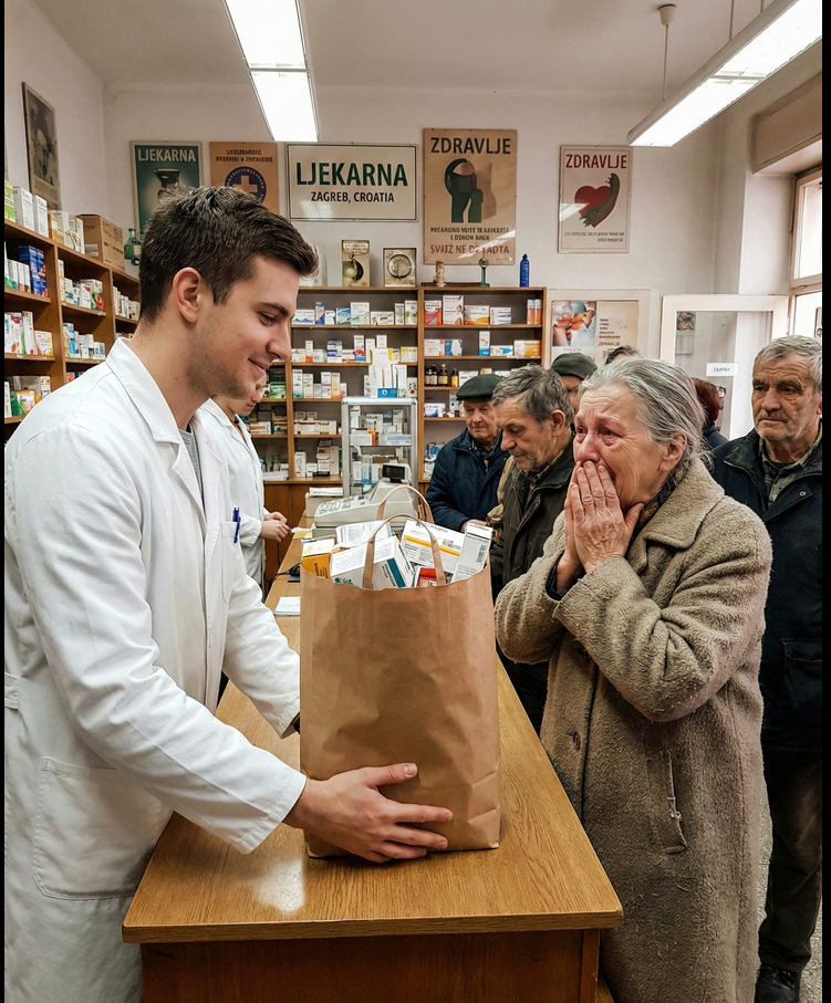 “Pripazite, ovo je za vas, bako”, rekao je mirno, donoseći kutije. Počeo je vaditi lijekove. “To su vaše tablete za tlak, tri kutije, da imate za tri mjeseca. I ubacio sam vam vitamine i magnezij za grčeve u nogama.” Lucija je gledala u to brdo lijekova, drhtajući, uplašena. “Sinko… Ja nisam mogla ovo tražiti… nemam novaca”, prošaptala je još jednom, odbijajući da uzme vrećicu.Ivan ju je smireno zaustavio. “Račun je već podmiren, gospođo Lucija. Nula eura. Ovo je poklon.” Lucija je ostala u šoku, potpuno zbunjena. “Tko bi meni ovo kupio?” šapnula je, a Ivan je tada spustio papir. Na poleđini papira je bila poruka: “Sjećate li se one noći, kada ste mi pomogli u autobusu?”