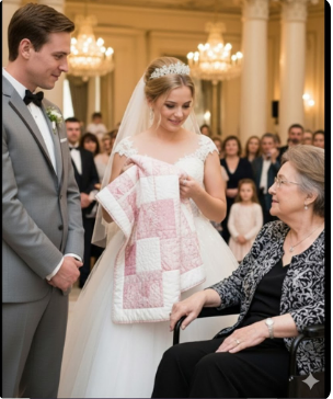 Smjestili su me za stol, naravno, s “starim članovima obitelji” koji su spavali tijekom obroka. Nije me bilo briga – bila sam sretna, jer se činilo da je moj unuk nosio cijeli planet na sebi, i to s osmijehom. Kada su mladenci posvetili svoje darove pozornici, izgledalo je kao kazalište. Ekstravagantne torbe, čekovi s previše nula, zlatni nakit. Moj dar u smeđem papiru i vezan špagom bio je posljednji koji je ostao. Cassandra se pretvarala da se smiješi. Šutjela je neko vrijeme dok je odmotavala papir, nakon čega je podigla deku kako bi je svima pokazala. U dvorani je nastala kratka tišina. Nakon toga, smijeh. Ne kod kuće, ne zahvalan, već hladan, arogantan smijeh koji nema mjerilo. “O, moj Bože… ručno vezani?” “Kako primitivno!”