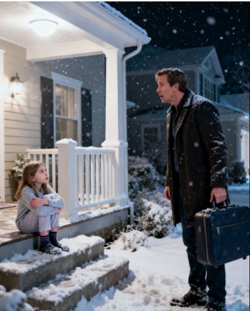 Tek kad se približio, shvatio je da gleda svoju kćer: u tankoj odjeći, bez cipela, promrzlu, s plavim rubovima usana. Njegov tihi glas: “Tata, tako mi je hladno…” prekinuo je njegove misli. Sljedeća izjava ciljala ga je u srce: Mama mi je rekla da napustim kuću. Bio sam previše agresivan. “Zatvorila je vrata.” U tom trenutku, omotao je kaput oko njezina tijela i osjetio grubost njezine kože, svi problemi su u njemu nestali. Nastanjujući rezidenciju koja je sada bila pansion. Nije zatražio ključeve. Nije pozvonio. Umjesto toga, uništava ulaz. Soba s temperaturom od 36 stupnjeva Celzija utjecala je na njega nesretnom slučajnošću: plamteći kamin, miris hrane, vino na stolu i glazba u pozadini.