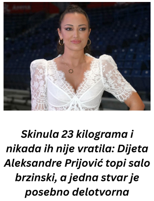 - Evo kako je Aleksandra Prijović izgubila 23 kilograma u samo nekoliko mjeseci i nikada ih nije vratila: Aleksandrina prehrana prvenstveno se sastoji od masti, a jedna posebna metoda je posebno uspješna. Ovaj režim mršavljenja postao je popularan primjer osobe koja ima puno toga za izgubiti, jer je Aleksandra pokazala da je moguće trajno promijeniti svoju težinu ako ste predani režimu i slijedite zdravu prehranu.