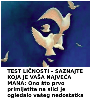 Pomažu nam da bolje razumijemo sebe, što je od velike važnosti za osobni rast. Objašnjen je test vizualne osobnosti. Na primjer, kada se pita što su prvo primijetili – lice ili golubove? – odgovor može otkriti informacije o nama. Ako ste prvo promatrali lice, to bi vjerojatno značilo da ste samouvjereni i posjedujete značajan osjećaj samopoštovanja. Ove osobe obično imaju liderske sposobnosti i sposobnost inspiriranja drugih, ali mogu biti sklone i ponosu, koji, ako se ne kontrolira, može dovesti do problema s bliskim prijateljima.