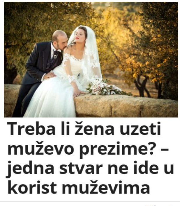 Brak se značajno mijenja i polako izumire na neke načine, a svi se pomalo preispitujemo zašto žene uzimaju prezime muškarca i kakve to posljedice nosi.