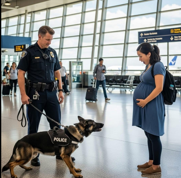Max nije bio u krivu. Ako je pokazao ovo ponašanje, nešto nije bilo u redu. Žena je odmahnula glavom, oči su joj suzile. “Nemam ništa sa sobom! Kunem se!” Max je još jednom zalajao – glasnije, zatim je zacvilio i nježno okrznuo njuškom o njezin trbuh. Daniels je shvatio da mora djelovati odmah. U sekundi je pozvao hitnu medicinsku pomoć u zračnoj luci, a putnici su pobjegli u strahu.