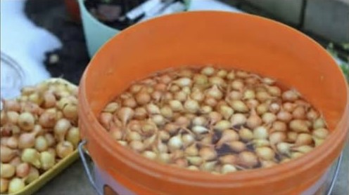 Namakanje sjemena luka također značajno ubrzava klijanje, uklanja inhibitore koji usporavaju razvoj i osigurava snažan početak rasta. Posuda sa vodom temperature između 20 i 25 stepeni Celzijusa dovoljna je da sjemenke ostanu u vodi 30 do 60 sati, a zatim se suše na zraku pre nego što se posade.