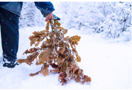 Posjet preuzimanju božićnog drvca posebna je prigoda za domaćina i njegovu obitelj. Tradicija nalaže da domaćin mora otputovati u šumu kako bi odabrao božićno drvce, zatim će ga donijeti kući i postaviti ispred ulaza. U gradovima, gdje je nemoguće posjetiti šumu, često se kupuje božićno drvce i postavlja ispred ulaza. Međutim, osim božićnog drvca, tradicija nalaže da se kupi i grančica drijena, što ima simbolično značenje koje je manje poznato, ali je ipak značajno u popularnoj kulturi.