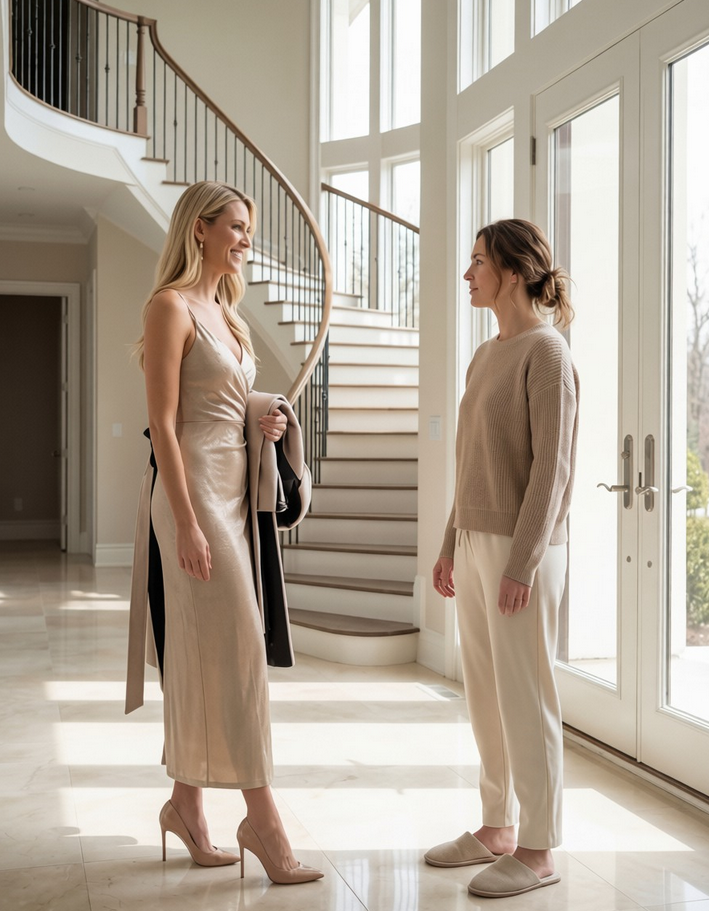 Otvorila sam vrata očekujući da ću ugledati dostavljača ili možda komšinicu koja je obavila kratku šetnju, no umesto toga pred sobom sam ugledala ženu koja je stajala ispred mene kao da je već bila odlučila da je tu i da zna tačno šta će se događati. Nije me ni pitala ko sam, nije izgovorila niti jedno ljubazno pitanje, jednostavno je skinula elegantni kaput i stavila mi ga u ruke kao da sam tu samo da služim njenim potrebama. Miris skupog parfema brzo je ispunio hodnik dok je bez oklijevanja zakoračila u moju kuću.